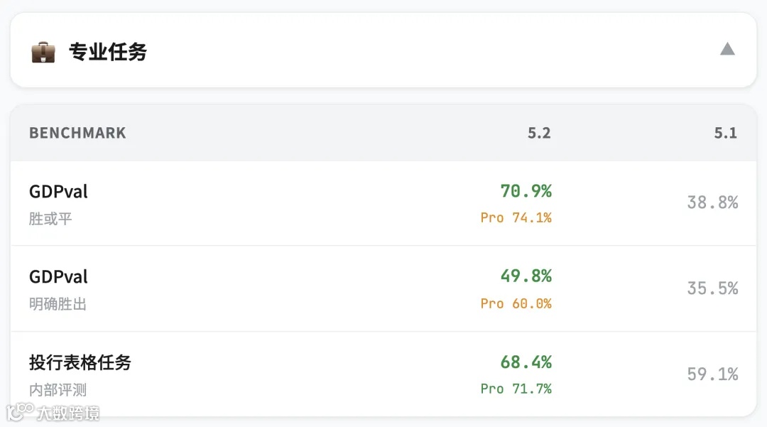 测试结果显示,GPT-5.2 Thinking在70.9%的任务中表现超越或持平人类专家,而GPT-5.2 Pro更是达到了74.1%的优异表现。
