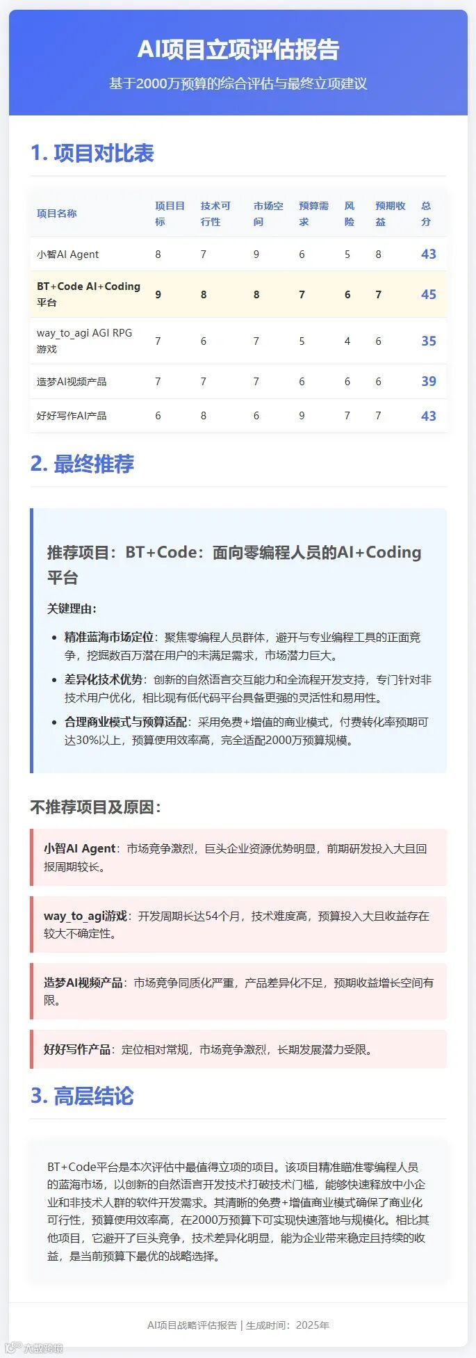 在企业决策场景中,豆包1.8需要分析多份不同格式的项目报告,在预算限制下选出最合适的项目。模型在短时间内完成项目对比分析,生成包含图表和详细评估的HTML报告。