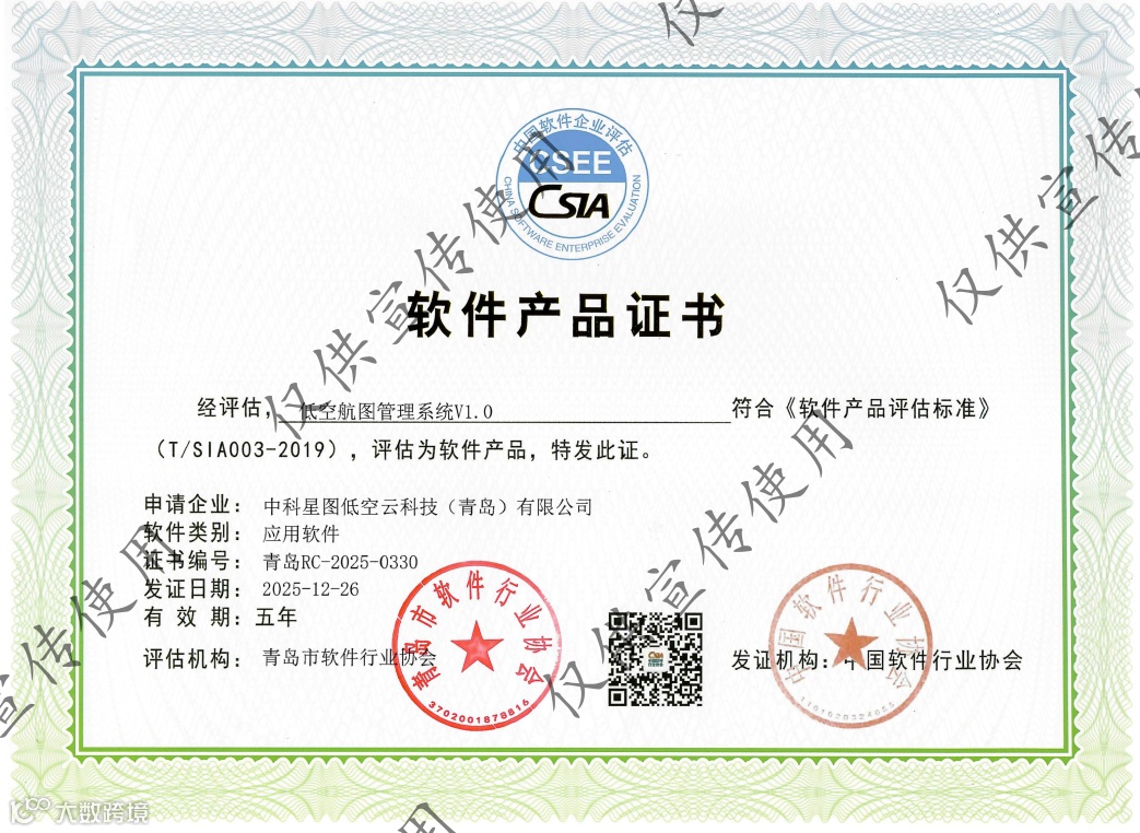 自成立以来,星图低空云始终坚守秉持“技术创新驱动产业升级”的发展理念,深耕低空经济软件领域,聚焦行业痛点与需求,自主研发打造低空产品体系,赋能低空产业发展。此次成功斩获“双软认证”标志着星图低空云的产品研发能力、软件开发技术实力、项目管理服务水平及企业经营能力等已在软件技术领域获得权威认可。对客户与合作伙伴来说,“双软认证”的加持,意味着更可靠的产品质量保障与更专业的技术服务能力,为双方开展深度合作、共建产业生态奠定了坚实基础。