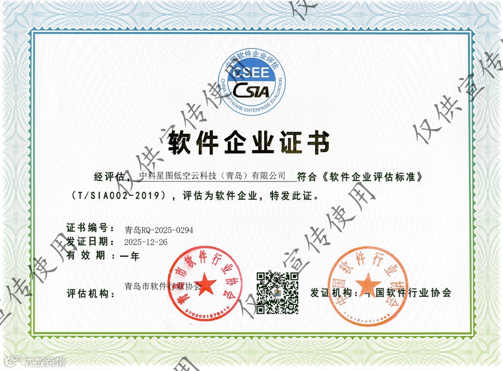 近日,中科星图低空云科技有限公司(以下简称“星图低空云”)在青岛市软件行业协会专家评审组的严格评估下,凭借卓越的研发实力与规范化管理体系,成功斩获“软件企业”与“软件产品”双重资质认证!这一殊荣不仅彰显了星图低空云在软件行业的前沿地位,也是公司在推动中国软件产业创新发展、增强国际竞争力方面的责任践行。