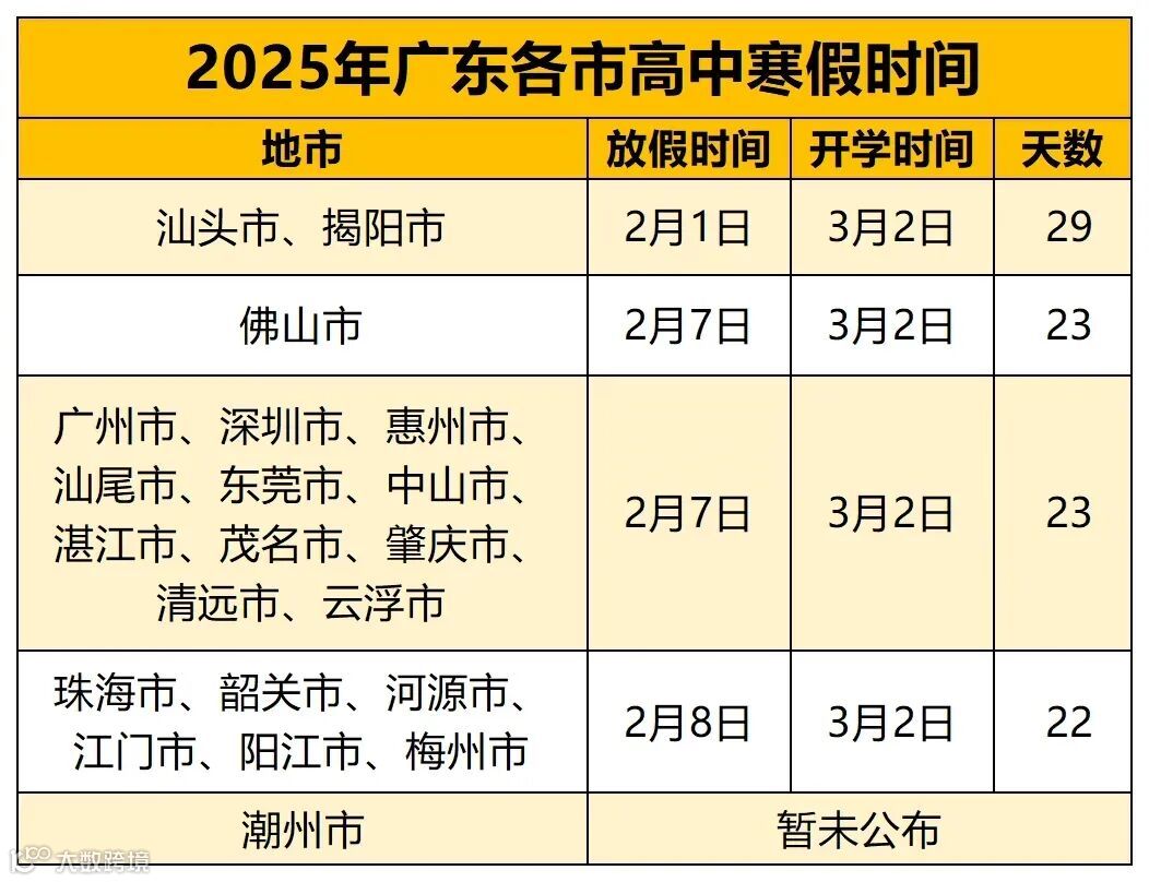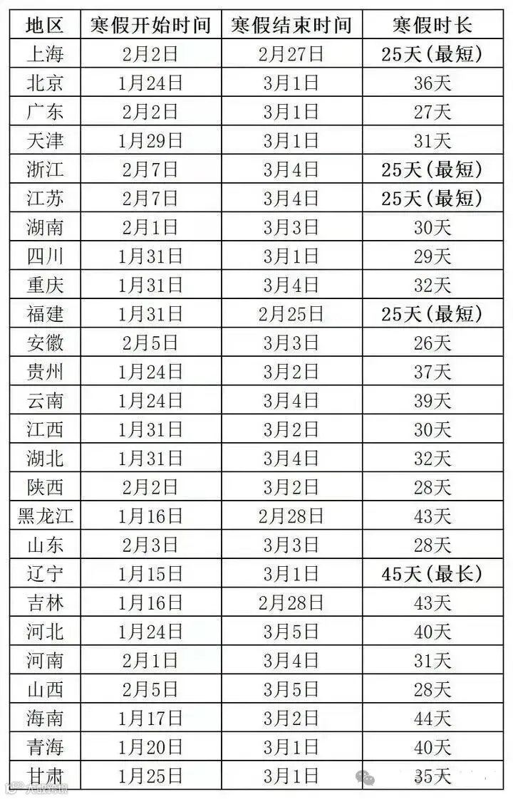 一起来看看你家娃寒假放几天~