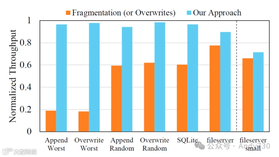 我们的评估结果表明,在不依赖代价高昂的碎片整理或文件重写的情况下,所提出的方法能有效地将碎片化或覆写文件的读取性能退化控制在仅几个百分点的范围内。这一成果为提高SSD在面对文件碎片化和频繁覆写场景下的性能提供了新的解决思路。