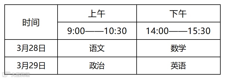 1.考试科目:语文、数学、政治、英语;考试分值:每科满分为150分,四科满分为600分,使用国家通用语言文字作答。