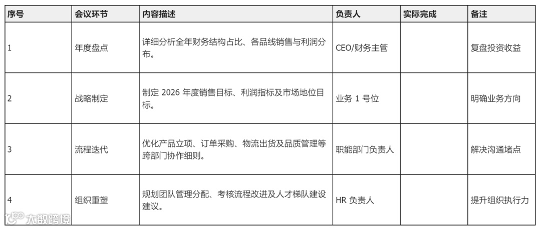 会前准备:年度决算、市场趋势预判、团队年度盘点。