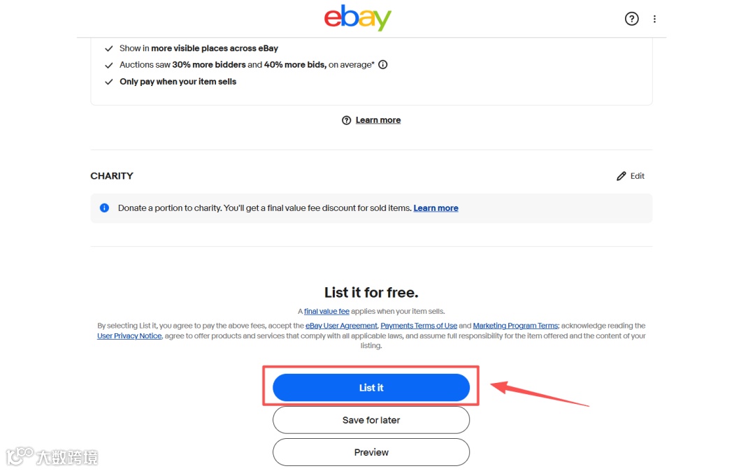 (4)内容填写完成,点击“List it”完成商品列表创建。