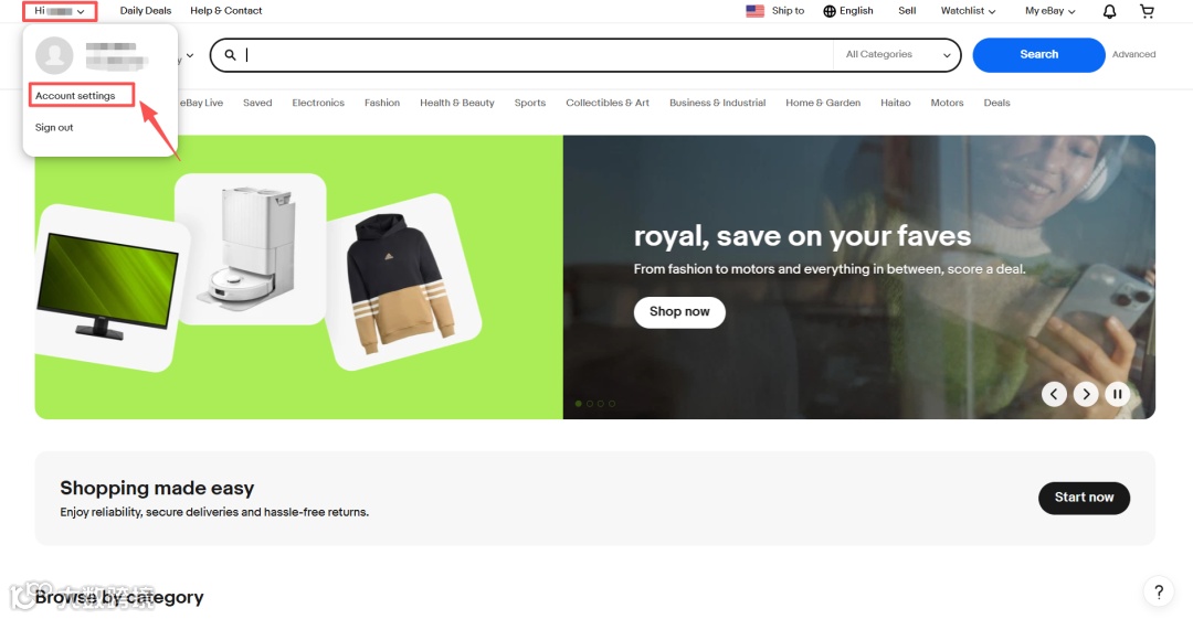(3)账号注册完成后,点击左上角头像,打开“Account settings”,进行店铺设置。