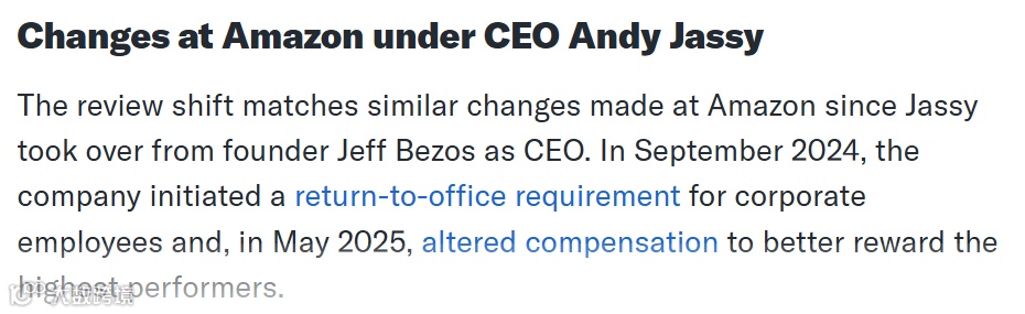 知情人透露,亚马逊新增了一项绩效规则,要求员工列出三到五项可以反映其个人贡献的工作成果,并汇报他们接下来的工作计划。