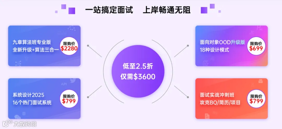 九章课程年卡,精选4门北美码农核心面试课,帮你“一站式”通关北美科技大厂面试,稳赢更“躺赢”~~~