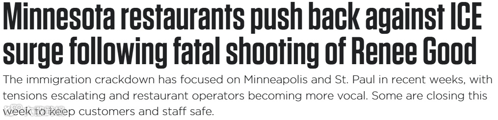 如今,明尼苏达州居民已经展开了大规模的抗议,比如多家餐厅宣布暂时关停,以保障顾客和员工的安全。