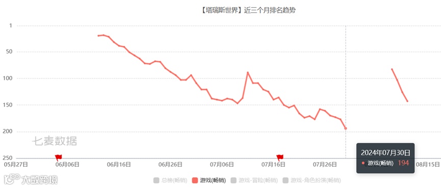 此次《塔瑞斯世界》虽然由腾讯发行,并历经多次打磨与调优,上线后也一度冲至畅销榜最高的19名,但随着网易宣布《魔兽世界》国服正式定档8月1日后,《塔瑞斯世界》手游的畅销排名便一路下滑到了《魔兽世界》上线前一天的7月31日,《塔瑞斯世界》手游便在畅销榜上消失。至于《塔瑞斯世界》的端游,由于它才是《魔兽世界》的真正竞品,因此表现只会更惨。