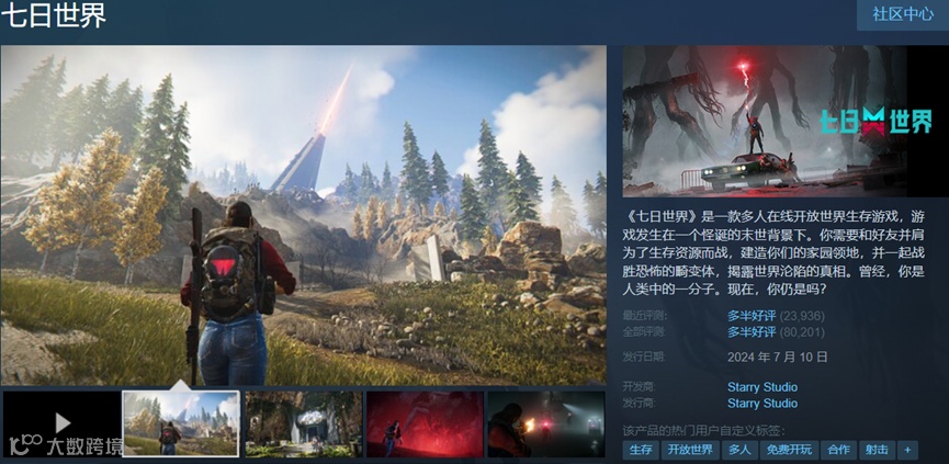 ▲图:《七日世界》在Steam上获得了“多半好评”的玩家反馈