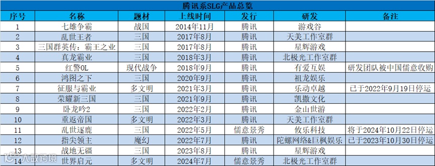 ▲图:《世界启元》已经是腾讯推出的第14款SLG游戏了