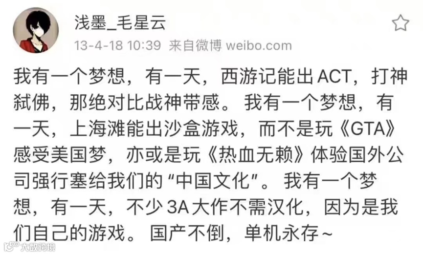 而一位在2021年因意外而去世的前腾讯员工,业界知名的资深游戏开发技术专家毛星云,曾在2013年乌克兰留学期间写下一篇文章《致终将由我们去复兴的国产游戏》。毛星云在文章中反复强调他的梦想——希望国产游戏能像中国的其他产业一样,以一个领跑者的姿态,面对全世界…