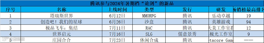 无论是《塔瑞斯世界》《极品飞车:集结》还是《世界启元》都在各自赛道上缺乏足够的竞争力,败给已上线已久的竞品,腾讯也因此沦为2024年游戏史上最卷暑期档中陪跑的角色。