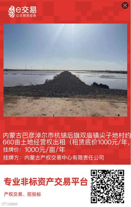杭锦后旗双庙镇尖子地村660亩高标准农田经营权公开出租