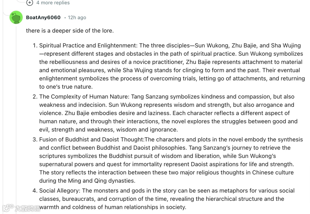 近几年,各种X权集团层出不穷,并不断向利润丰厚的行业疯狂渗透。游戏,正是他们的主要战场之一,而Sweet Baby Inc则是其中的领军者。▲图:暴雪玩家质疑政治正确运动太过火他们罔顾传统文化、地域文化甚至历史事实,要求游戏中增加毫无关联的女性、黑人甚至性少数角色。一旦游戏公司不予配合,他们就会组织起大规模的网络冲锋,对游戏公司造成极其恶劣的影响。有些公司为了息事宁人,被迫缴纳高昂的会费,并对游戏内容进行修改。于是我们看到了《最后生还者2》中,主角被设计成一个女同,而另一名直女角色被抑制了颜值。遭到同样“颜值抑制”待遇的还有《地平线》中的埃洛伊,该角色也同时出现在了联动游戏《原神》中。以北欧神话为背景的《战神:诸神黄昏》中,出现了黑人角色,让人不禁怀疑,几千年前苦寒的北欧就开始进行黑奴贸易了吗?《黑神话·悟空》作为年度热门游戏,自然也免不了受到“重点照顾”,但游戏开发团队秉承了“俺老孙”的脾气,选择了硬刚到底。有报道称,团队拒绝向Sweet Baby Inc缴纳高达700万美元的“指导费”,而是依然“我行我素”的按照既定框架进行角色塑造,并没有因此生硬塞入和游戏无关的额外角色。2023年,IGN一篇《〈黑神话:悟空〉开发商的性别歧视历史是如何使其西行之路变得复杂的》文章在游戏圈内掀起轩然大波。文章试图在向玩家表明,这是一款由态度有问题的开发团队,开发的一款政治不正确的游戏。然而作者没想到的是,这篇文章不但没有对《黑神话·悟空》造成任何打击,反而成为“反向带货”的典范,和230多万天命人一起,帮助游戏科学团队缔造了游戏历史上的一个新的里程碑。无论在各大论坛,还是Steam的游戏社区,都有大批玩家对此表示祝贺。《黑神话·悟空》的成就,结结实实的打击了政治正确团体的影响力,为游戏开发商提振了士气。最终,IGN海外给出了8/10的高分,IGN中国干脆直接给出了满分。▲图:网友嘲讽IGN有网友表示,如果一款游戏让IGN紧张,直接买就对了。▲图:网友反讽IGN带火中国神话外国人迷上西游记当外国人开始说“Yaoguai”而不是monster,开始在说“shen xian”而不是god的时候,中国文化终于支棱起来了。英语中有着大量的外来词汇,Titan,Banshee,Fairy…,都跟中国神话里的妖怪不一样。中国的妖怪当然也应该有自己专属的称呼。玩家从游戏中接触到外来文化,并因此对该文化感兴趣是十分常见的事情。《战神》系列让更多玩家对希腊神话产生了兴趣。《原神》将全世界范围内都非常小众的魔鬼学文献《所罗门的小钥匙》,第一次带到了广大玩家的面前。▲图:所罗门七十二柱魔神的印记同样的,《黑神话·悟空》也令海外玩家开始关注《西游记》,进而关注到中国神话体系。▲图:《黑神话·悟空》带动了《西游记》的搜索量暴涨▲图:中国玩家在狂欢,国外玩家在恶补有人好奇JTTW(《西游记》的英文《Journey To The West》缩写)到底讲了什么。▲图:海外玩家开始关注《西游记》有人认真的写下了《西游记》的深度解读。▲图:海外玩家开始关注《西游记》有人表示正是这款游戏,让他下定决心去买全套《西游记》电子书。有人不知道该从哪里开始读,下面评论表示“从头读到尾,这部经典绝对不会让你失望”。▲图:海外玩家开始关注《西游记》而日本、越南的网友则纷纷表示,真的是沾了从小就了解《西游记》的光。▲图:《西游记》电视剧陪伴越南孩子童年当更多人对《西游记》小说开始感兴趣,小说中体现的中国哲学,必然会获得更广泛的认知。而在此之前,《黑神话·悟空》提前让海外玩家意识到了中国游戏的崛起。首个爆款国产3A大作展现极高的工业品质