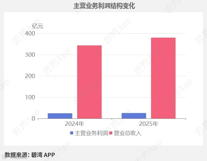 2025年三季度主营业务利润为25.39亿元,去年同期为24.37亿元,同比小幅增长4.18%。
