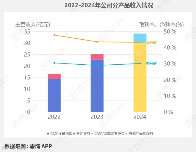 2024年公司的主营业务为半导体行业,其中CMP/减薄装备销售为第一大收入来源,占比87.70%。