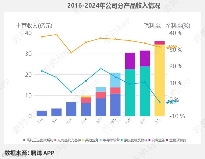 2024年公司的主要业务为泛半导体,占比高达95.28%,主要产品包括系统集成和设备业务两项,其中系统集成占比78.51%,设备业务占比16.80%。