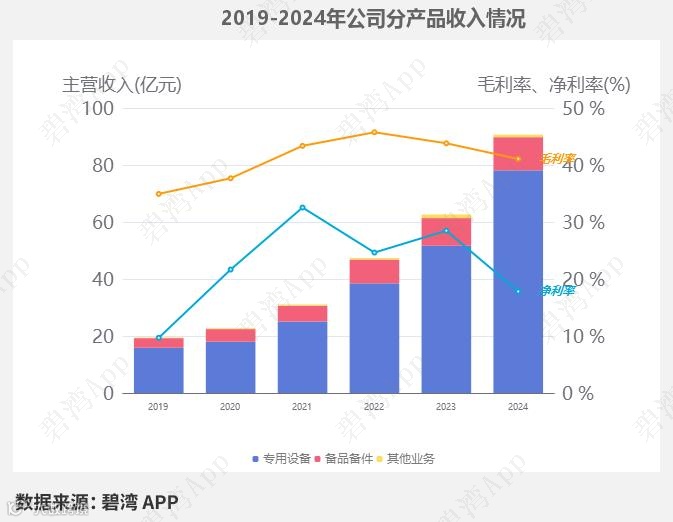 2024年公司的主营业务为半导体设备收入,其中专用设备为第一大收入来源,占比86.17%。