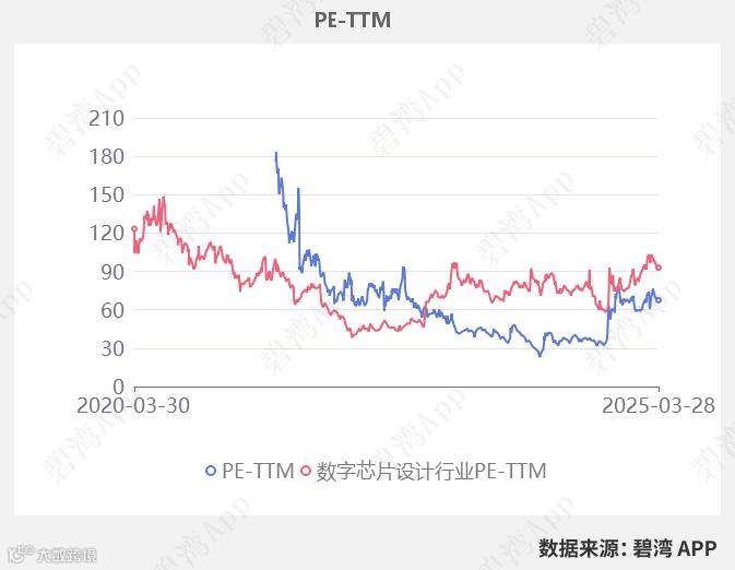 在2025年03月28日,复旦微电的PE-TTM是67.53,而数字芯片设计行业的PE-TTM是92.89,复旦微电低于数字芯片设计行业的PE-TTM。