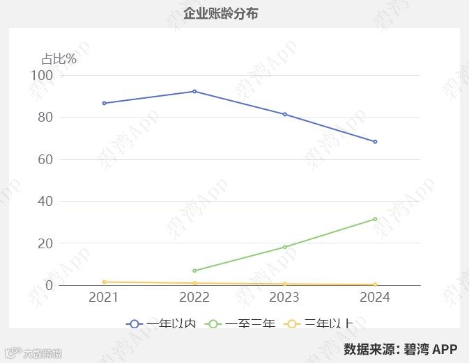 从账龄趋势情况来看,公司一年以内应收账款占比,在2022年至2024年从92.23%小幅下降到68.29%。一年以内的应收账款占总应收账款比重有明显下降。