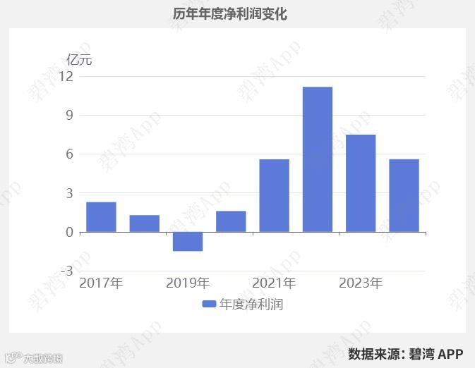 净利润从2019年年度到2022年年度呈现上升趋势,从-1.50亿元增长到11.17亿元,而2022年年度到2024年年度呈现下降状态,从11.17亿元下降到5.60亿元。