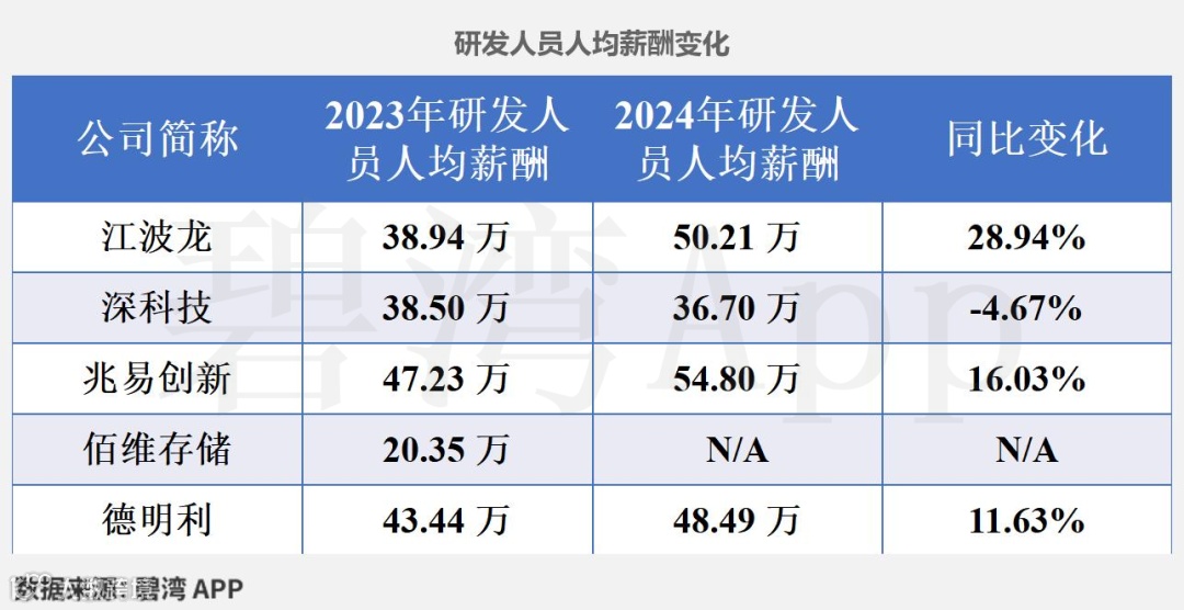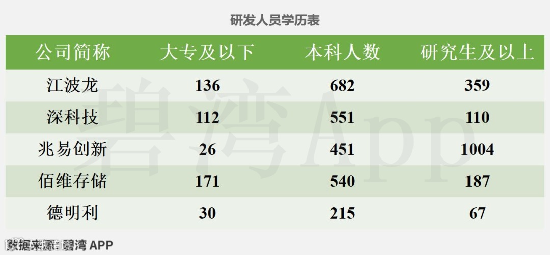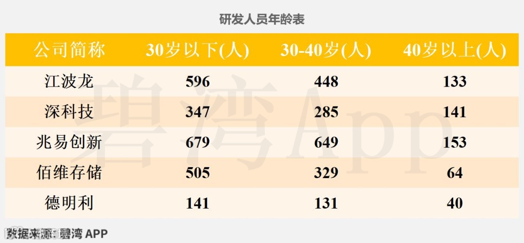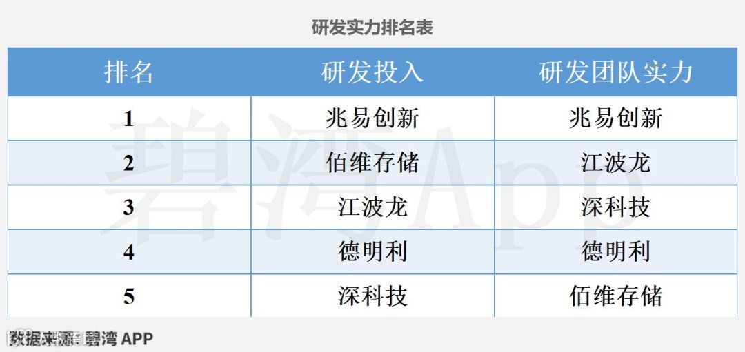 根据兆易创新(603986)、佰维存储(688525)、深科技(000021)、德明利(001309)、江波龙(301308)公开披露数据,对5家公司的研发实力信息等数据统计如下。