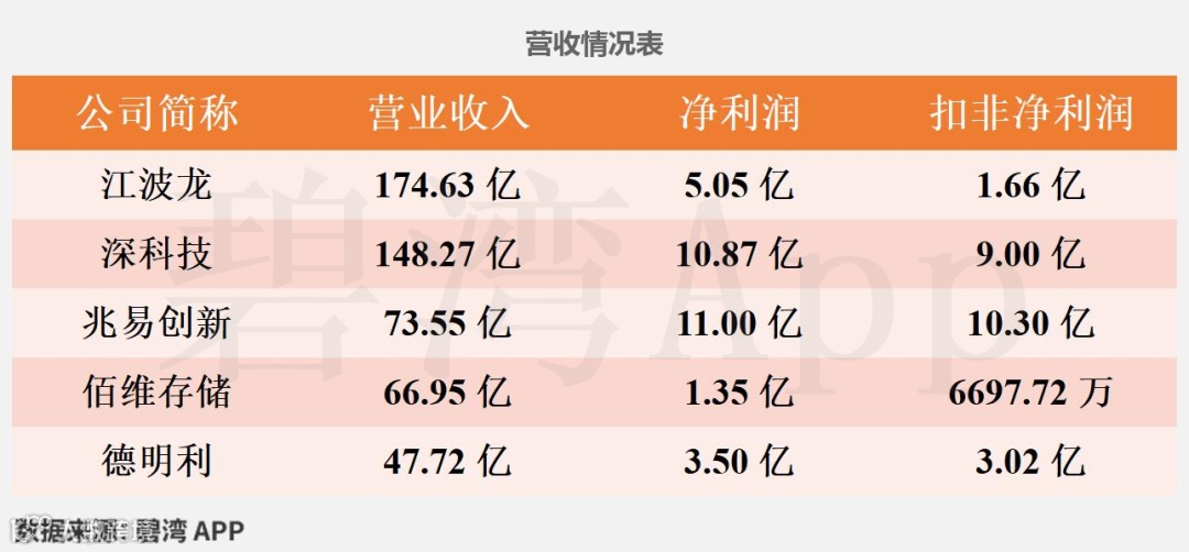 通过年报我们可知,2024年各家公司的经营状况都较好,没有净利润为负的情况,其中兆易创新是2024年净利润最多的公司,江波龙是2024年营收最多的公司,为174.63 亿。佰维存储是2024年扣非净利润最低的公司,为6697.72 万。
