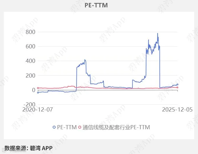 在2025年12月05日,永鼎股份的PE-TTM是75.12,而通信线缆及配套行业的PE-TTM是34.39,永鼎股份的PE-TTM远高于通信线缆及配套行业的PE-TTM。