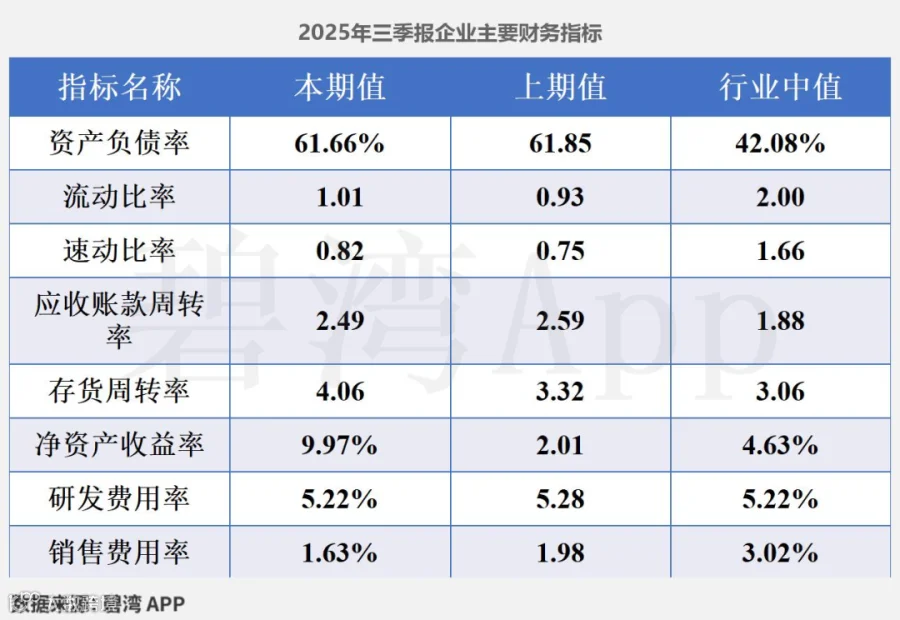 2. 流动比率为1.01,较上年同期增长0.08(上年同期为0.93);指标值低于行业中值(行业中值为2.00),短期偿债能力低于行业平均水平。