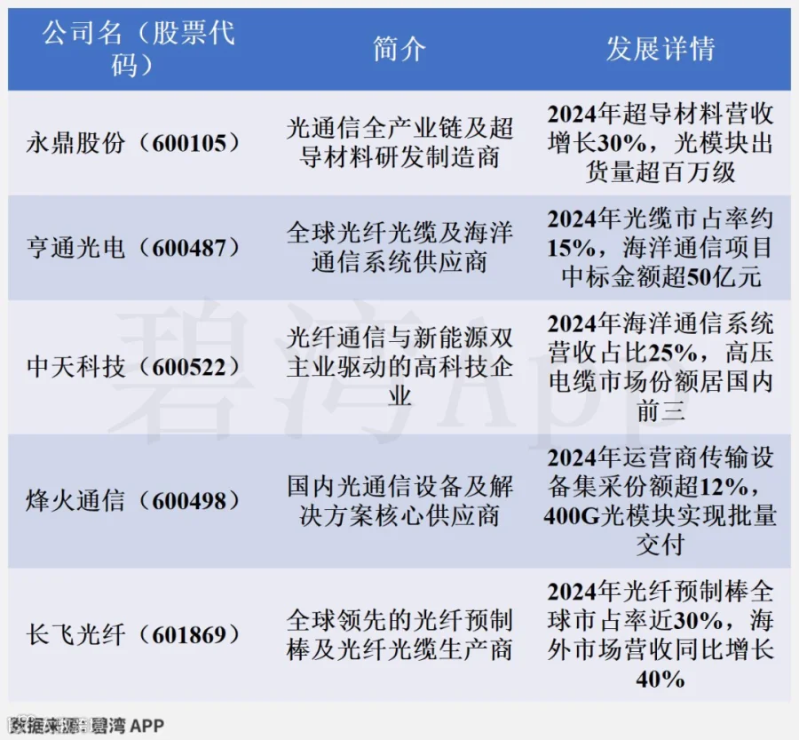 永鼎股份在光通信产业链布局完整,光模块及超导带材技术国内领先,但整体市占率不足5%,属细分领域第二梯队,2024年超导材料营收增长30%。