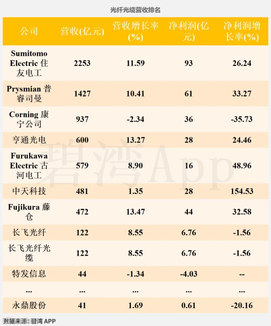 截止到2025年9月24日,永鼎股份近十二个月的滚动营收为41亿元,在光纤光缆行业中,永鼎股份的全国排名为5名,全球排名为11名。