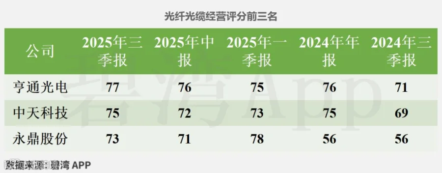 永鼎股份在2025年三季报经营评分排名为第1847名,在光纤光缆行业中排名为3名。