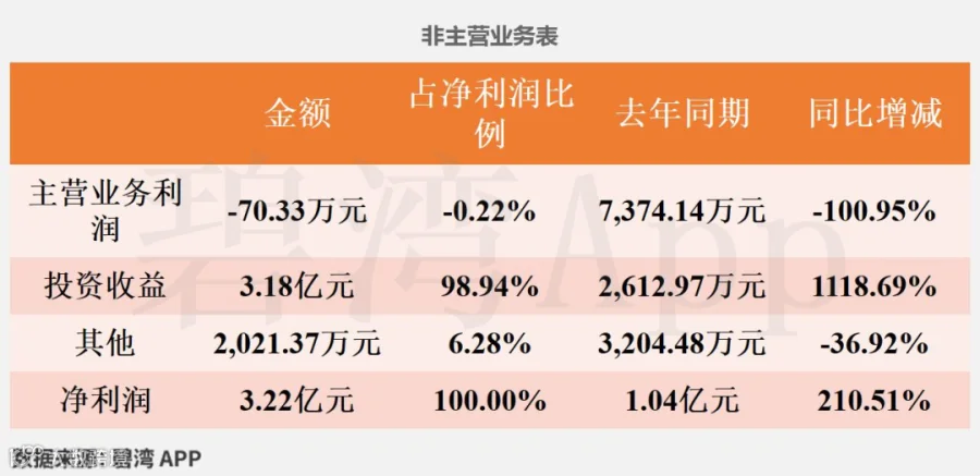 但是投资收益本期为3.18亿元,去年同期为2,612.97万元,同比大幅增长。