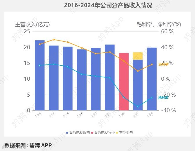 2024年公司的主营业务为有线电视行业,主营产品为有线电视服务。