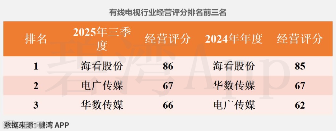 行业排名(有线电视):6/10