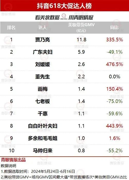 不具备“顶流效应”的垂类达人们,很难获得平台的特殊对待,也不具备亿级补贴的财力。搭搭、千惠、骆王宇、潘雨润,都是最早入局直播带货的资深美妆红人,2023年3月至2024年3月销售成绩分别位于抖音美妆带货榜前四。然而,根据青眼数据,此次618她们销售额同比下跌都在50%~90%左右。