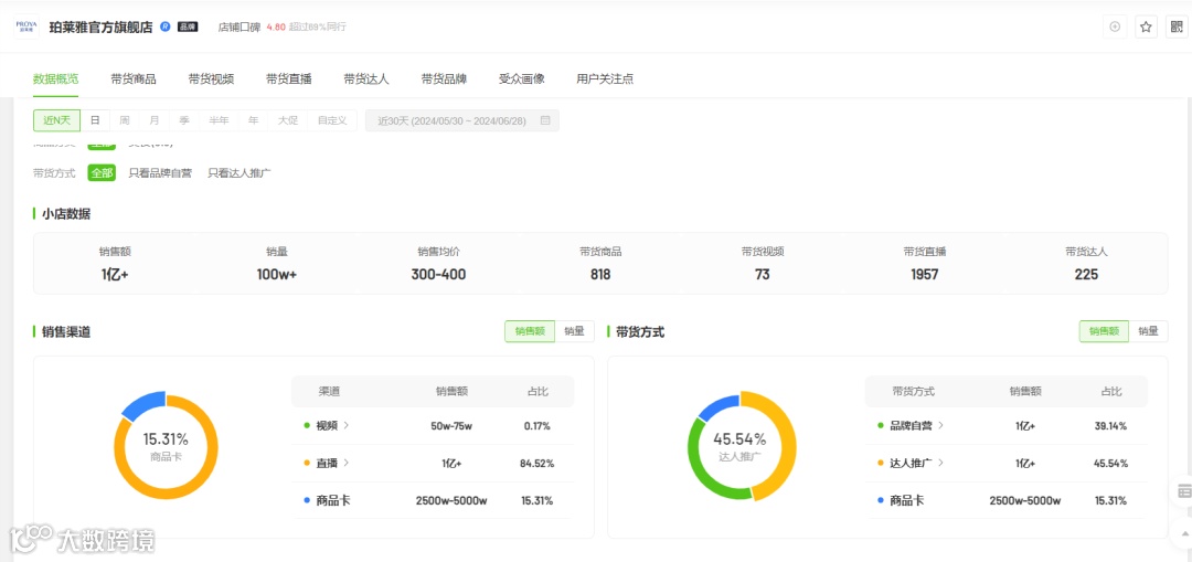 飞瓜数据显示,珀莱雅、薇诺娜等国产大牌的自营直播间销售占比都在50%左右,有些品牌甚至达到60%以上。