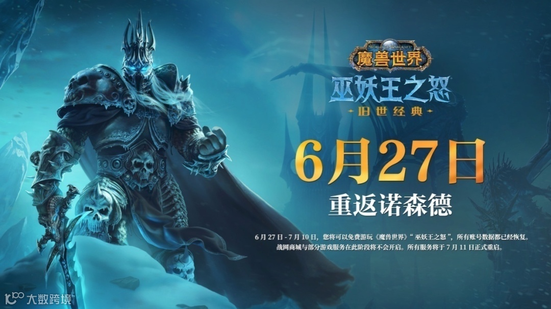 图:网易宣布《魔兽世界》国服将于将在6月27日正式回归