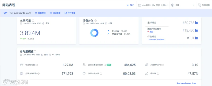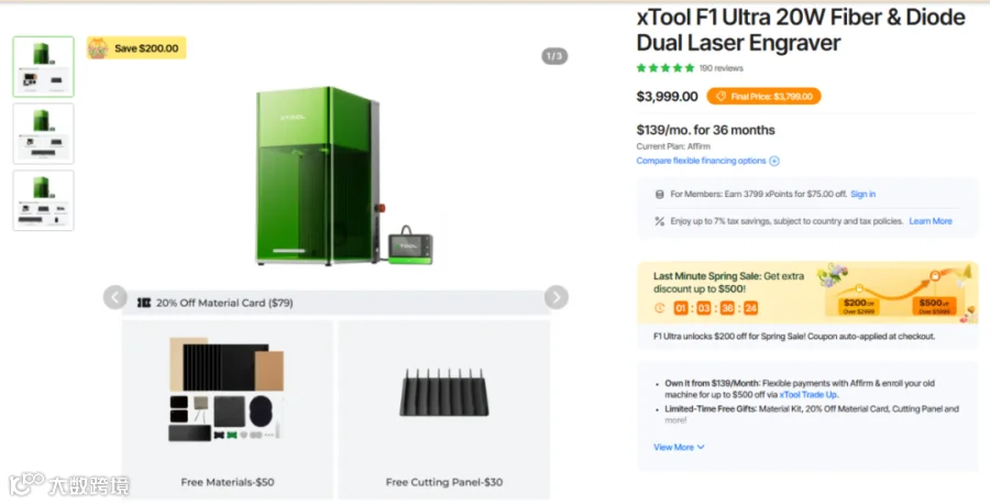此外,从行业竞争力来看,xTool的网站在行业内排名第101位,在美国排名第18496位,在细分领域具备一定优势,月访问量达127.4万独立访客。