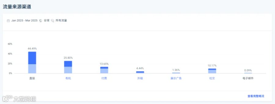 图源:Similarweb在流量来源渠道方面,直接流量占比最高,达60%,表明品牌忠诚度或复购率较高;有机搜索占比44.49%,SEO效果显著,其中非品牌词占比76%,如“laser engraver”等,说明用户多通过通用词搜索进入网站;付费搜索占比25.80%,非品牌词广告表现突出,如“lasereng raver”点击率增长1145.45%。