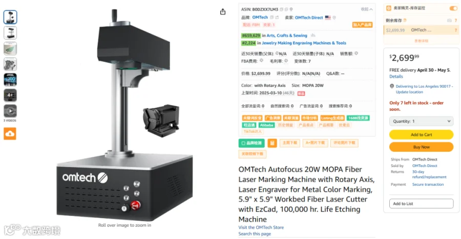 品牌OMTech 20W光纤和二极管激光雕刻机 图源:Amazon