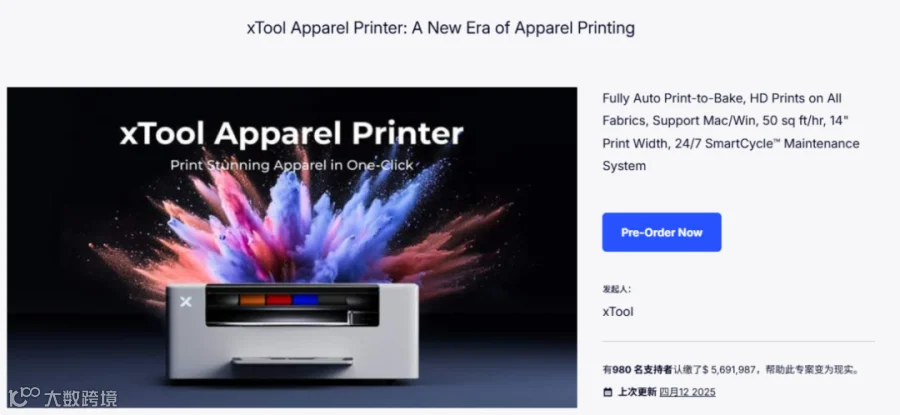 凭借在Makeblock时期积累的创客社群资源,团队快速推出首款消费级产品xToolD1,以半导体蓝光激光技术实现万元级定价,在Kickstarter众筹首日即斩获百万美元订单,截至4月12日已众筹569万美元。
