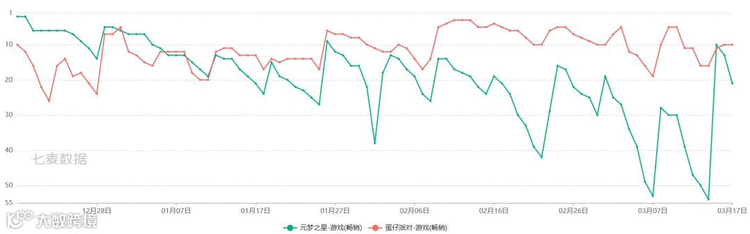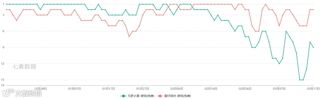 ▲图:《元梦之星》与《蛋仔派对》下载榜排名对比