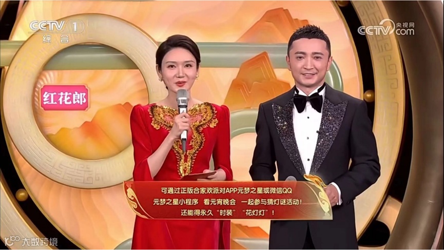 ▲图:央视主持人和《元梦之星》,邀请现场和电视机前的观众一起猜灯谜