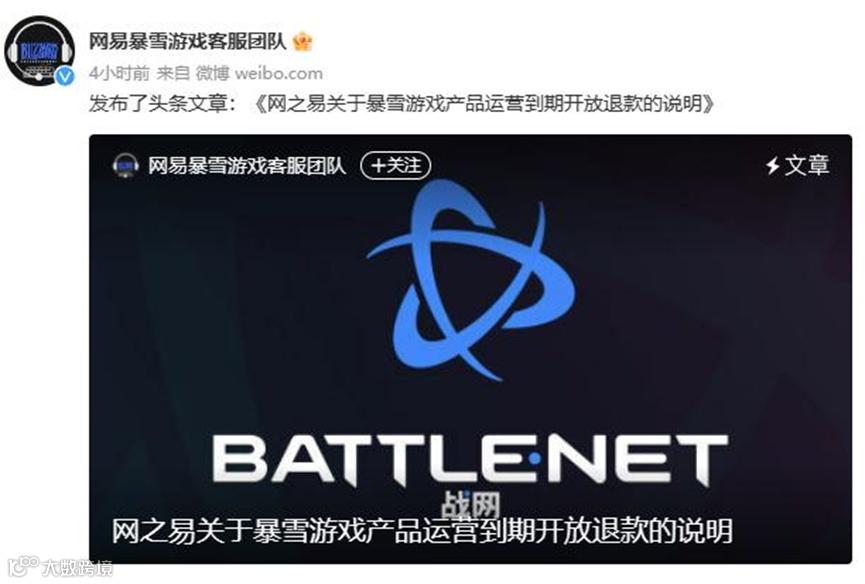 ▲图:网易暴雪游戏客服团队发布《网之易关于暴雪游戏产品运营到期开放退款的说明》