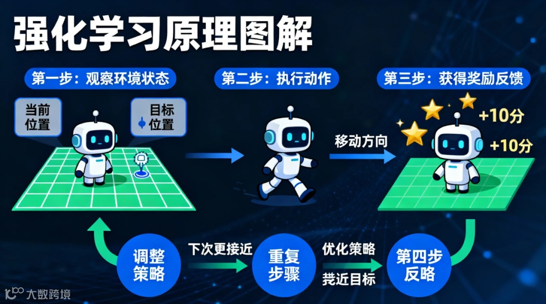 • 下棋AI(如AlphaGo):通过无数盘自我对弈,从赢棋(奖励)和输棋(惩罚)中学习,最终发现人类未知的精妙棋法。