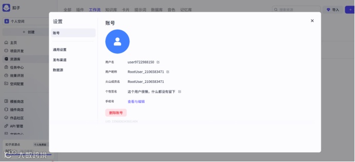 如果在火山引擎提报工单,需要提供UID,也是在这个页面,最下方。 如果不小心多注册了账号,同一个手机绑定多个号,不想要了,可以在这里操作。 登录不想保留的账号,在账号设置页面,点击“删除账号”按钮。