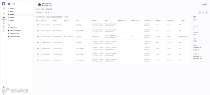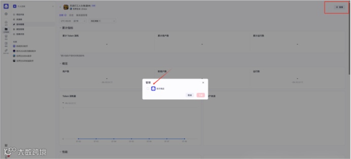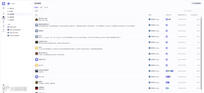 支持查看智能体发布相关的信息,比如智能体名称、创建人、已发布平台、最近发布时间、Token消耗等